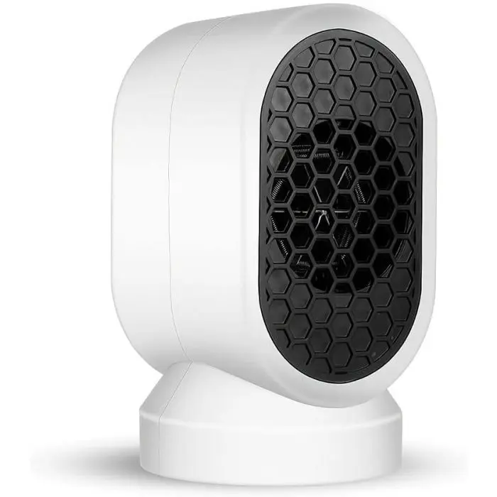 Su diseño compacto —20 cm de alto, 10 cm de profundidad y 11 cm de ancho— lo hace perfecto para colocarlo sobre escritorios o en rincones pequeños. Cuenta con funciones de oscilación y ventilación, lo que permite distribuir el calor de manera uniforme o refrescar el ambiente cuando es necesario.