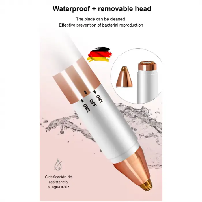 sta depilación facial ofrece dos tipos de cabezales de corte para satisfacer las necesidades de belleza de diferentes partes del cuerpo. Se puede utilizar no solo como cortador de cejas, sino también como depilador facial.