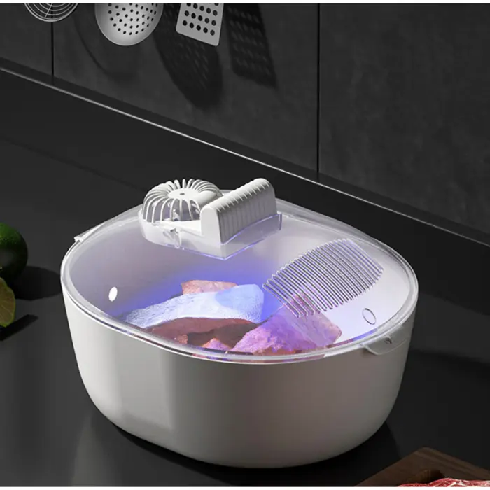 La caja de descongelación para carne congelada se puede utilizar para descongelar rápidamente alimentos congelados, también es adecuada para limpiar frutas y verduras.