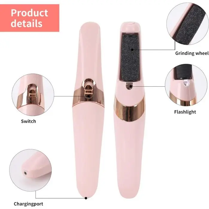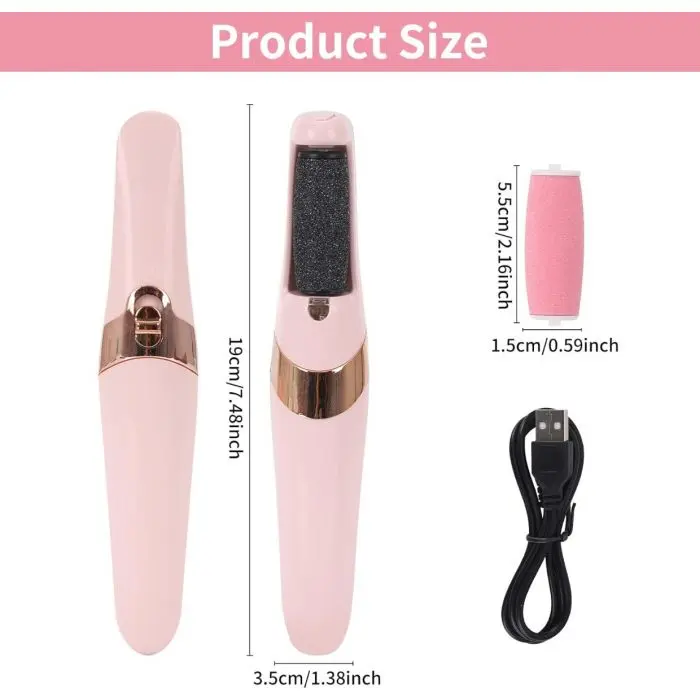 Exfoliador eléctrico para pies con cable USB y rodillo con partículas micro abrasivas.