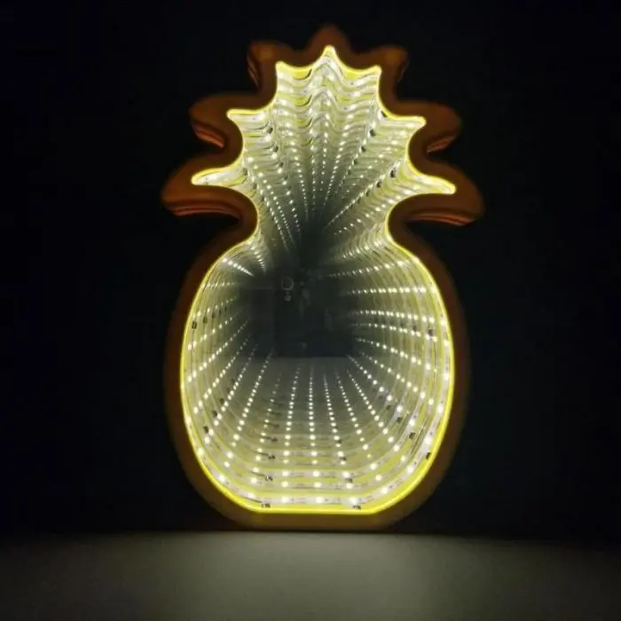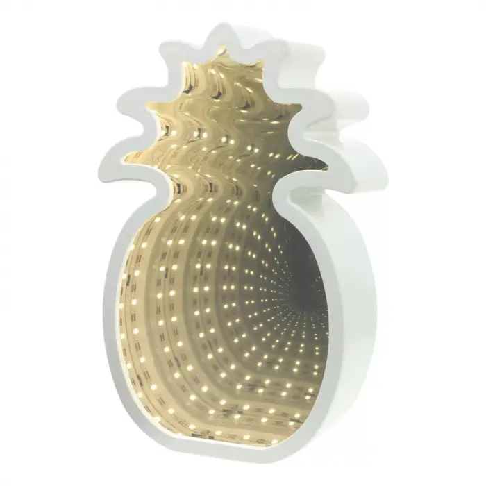 Lampara led blanca con forma de ananá. Espejada genera un efecto infinito.