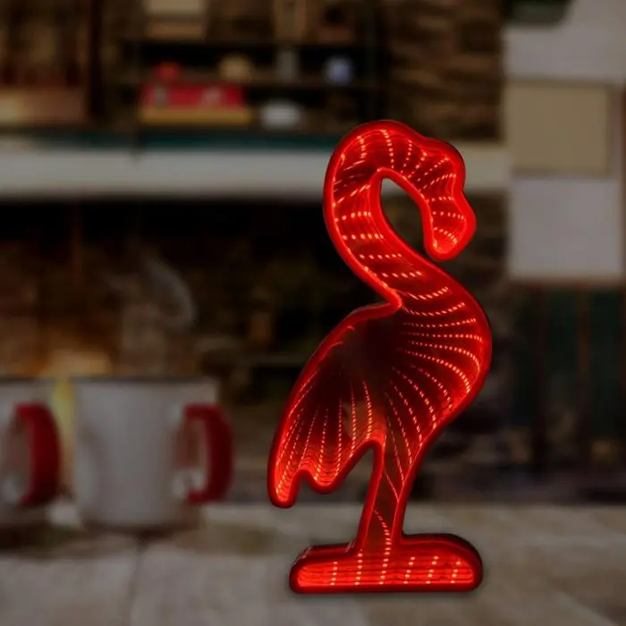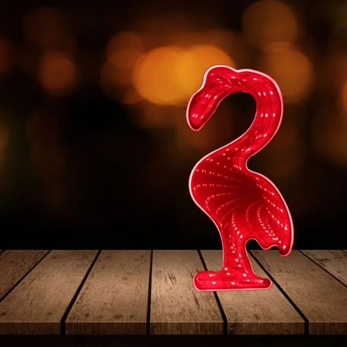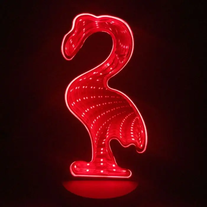 Lampara led blanca con forma de cisne. Espejada genera un efecto infinito.