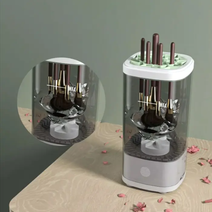 Nuestro limpiador de brochas de maquillaje eléctrico utiliza tecnología de limpieza avanzada para limpiar a fondo la mayoría de los tipos de cepillos de maquillaje en poco tiempo. Flujo de agua adecuado y diseño de cabezal de cepillo giratorio, el limpiador penetra profundamente en las cerdas para eliminar residuos cosméticos y bacterias difíciles de limpiar para garantizar la higiene y seguridad de tus cepillos.