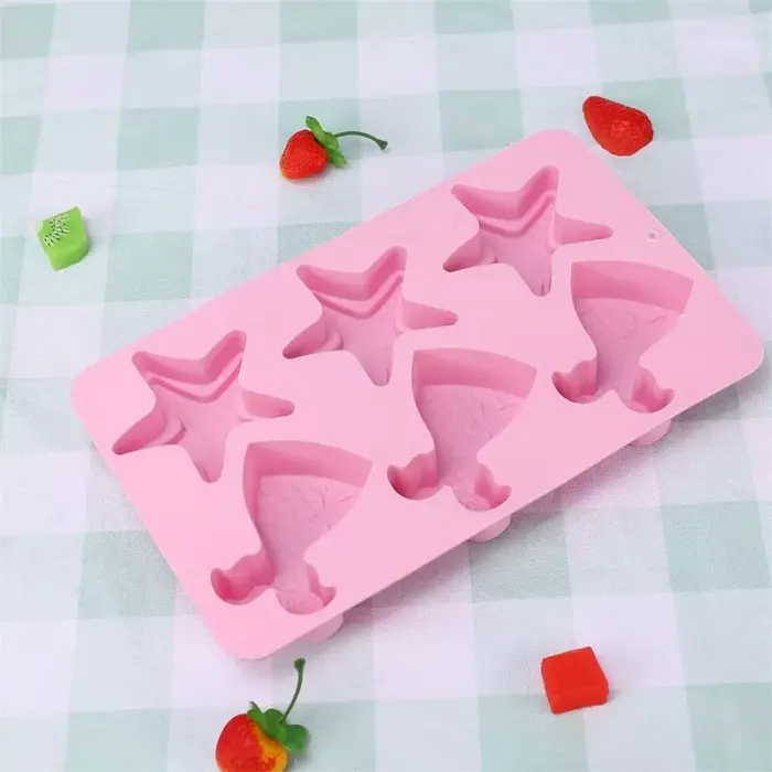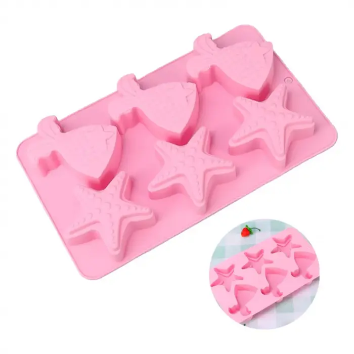 Molde de silicona con forma de cola de sirena y estrella de mar.