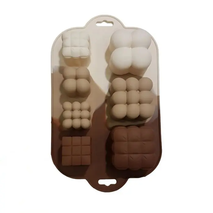 Despierta tu creatividad con nuestro innovador molde de silicona, perfecto para dar un toque moderno y original a tus creaciones. Con 7 cavidades con diseño de cubos burbuja (también conocido como "almohada"), podrás elaborar chocolates, mini postres, jabones, velas, o piezas de resina y yeso con facilidad y un acabado distintivo.