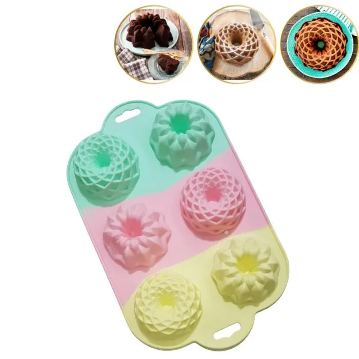 Diseño Elegante Savarín Espiral: Molde con 6 cavidades individuales en forma de savarín espiral, tal como se observa en las imágenes, ideal para dar un toque distintivo y profesional a tus postres y creaciones.