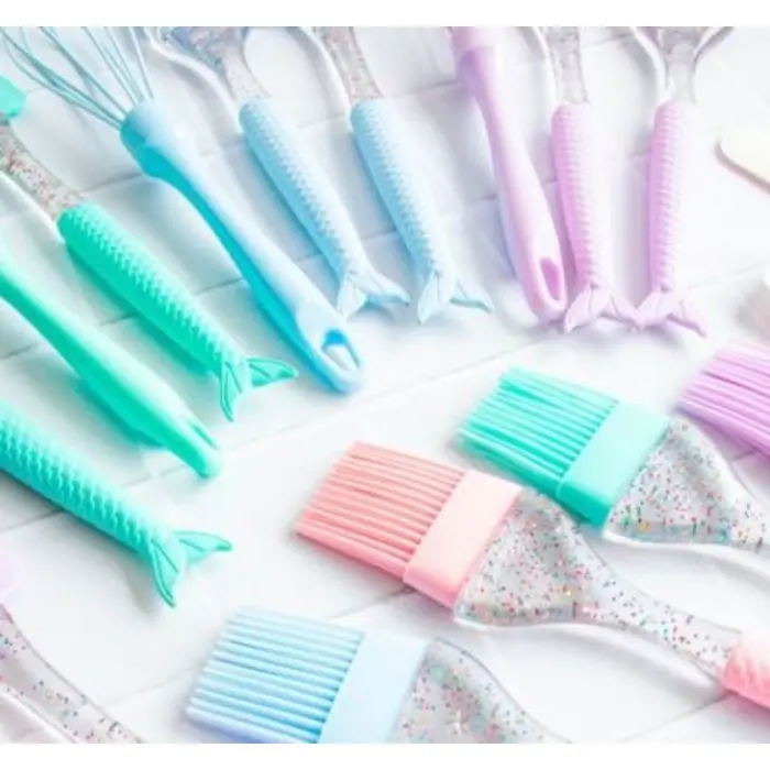 - Mango de acrilico efecto glitter y silicona con forma de cola de sirena