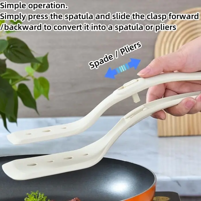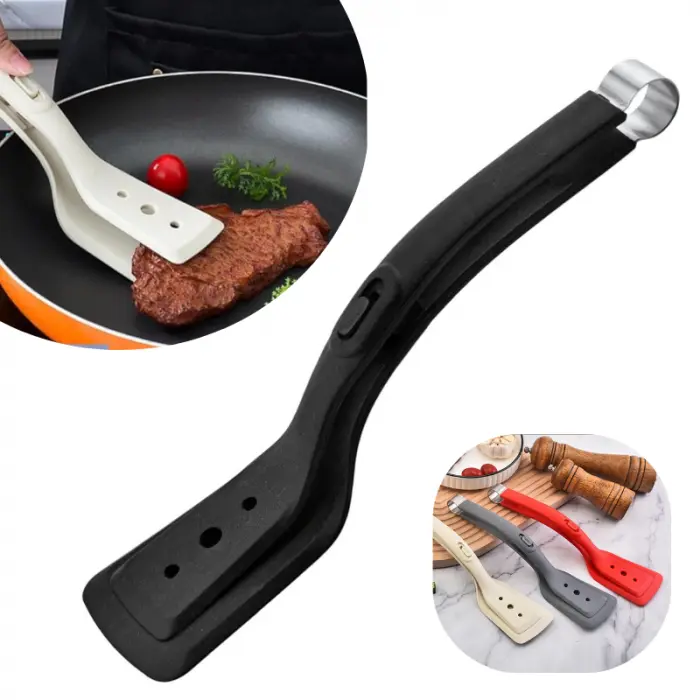 -Pinzas de espátula 2 en 1 con agarre y tapa de silicona para huevos, pan, panqueques, pescado, tostada francesa, tortilla, hacer bistec, abrazadera para cocinar en casa y cocina.