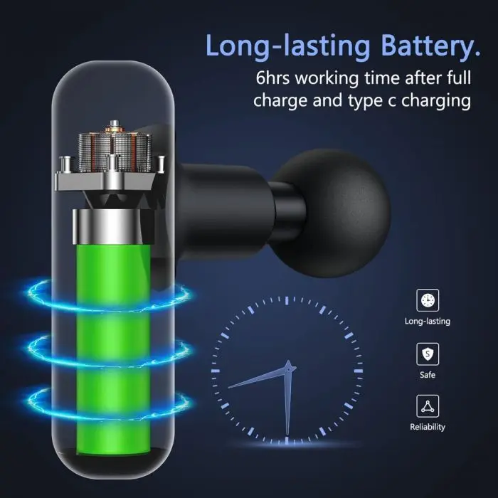 Utiliza tecnología metal-denoise. Bajo nivel de ruido (35dB - 55dB) para usar en la oficina o gimnasio sin causar molestias. Es un excelente compañero para calmar los músculos doloridos y liberar el dolor.
