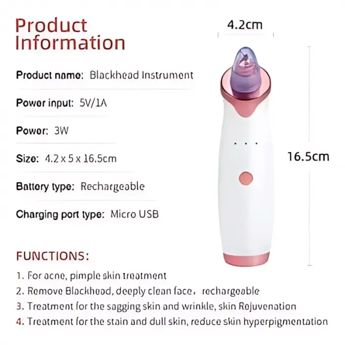 -Succión fuerte: la fuerza de succión es ajustable, succión de la espinilla Eficaz para succionar puntos negro de la nariz y el acné.