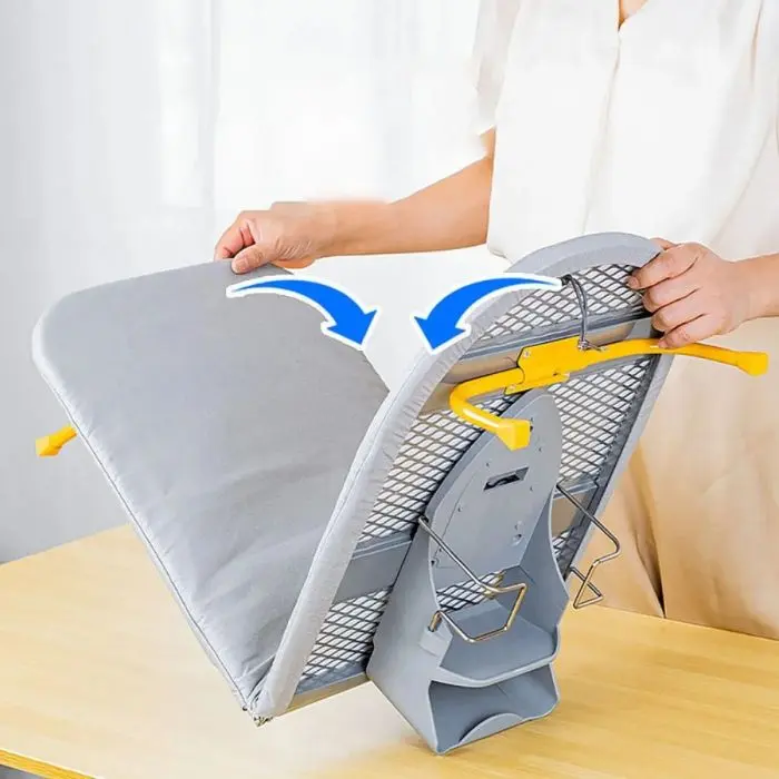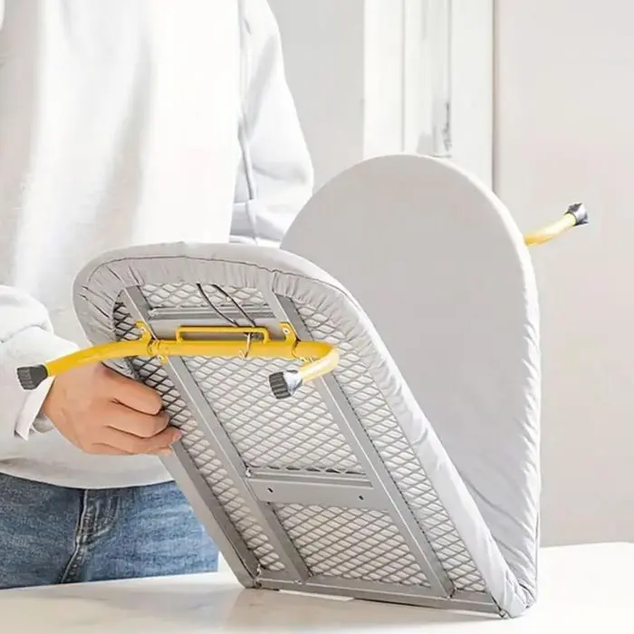 Revoluciona tu rutina de planchado con nuestra tabla de mesa plegable ultra compacta. Su diseño inteligente permite doblarla por la mitad, ocupando un espacio mínimo y facilitando su almacenamiento en cualquier rincón del hogar.