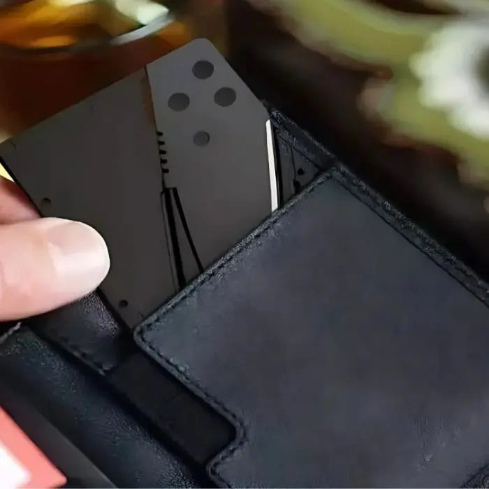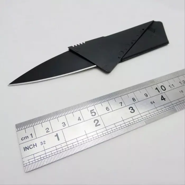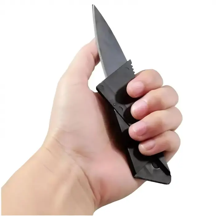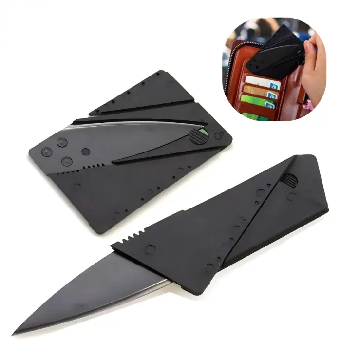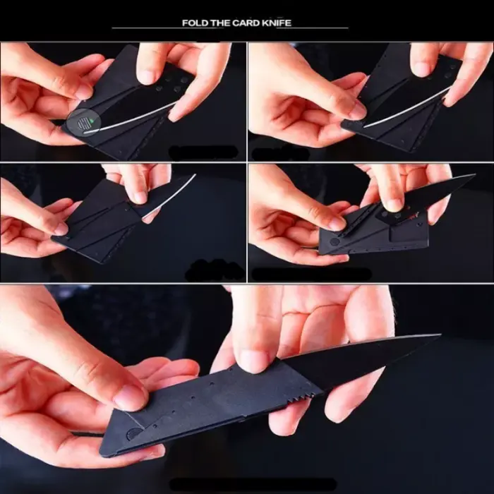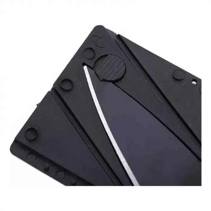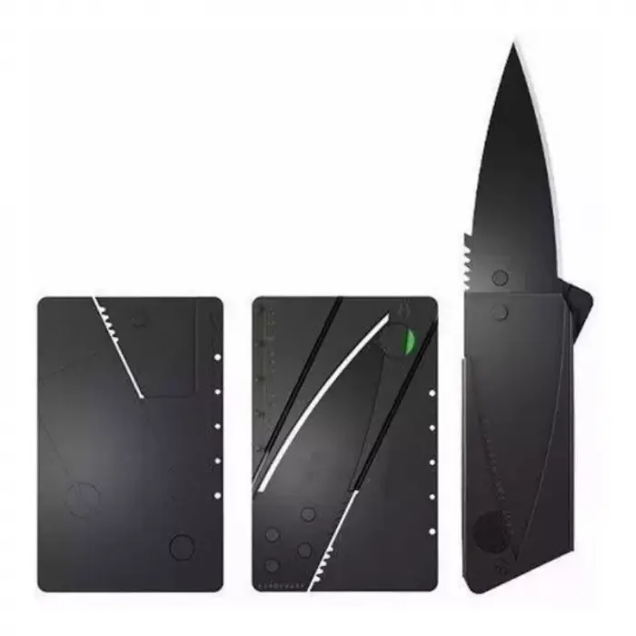 Cuchillo súper ligero de supervivencia en formato tarjeta de crédito, totalmente desplegable. Está construido en caucho antideslizante y con un cierre de seguridad único y a prueba de niños. Este articulo es de excelente utilidad y hace furor en el mundo por su ingenioso plegado llamado "metamorfosis".