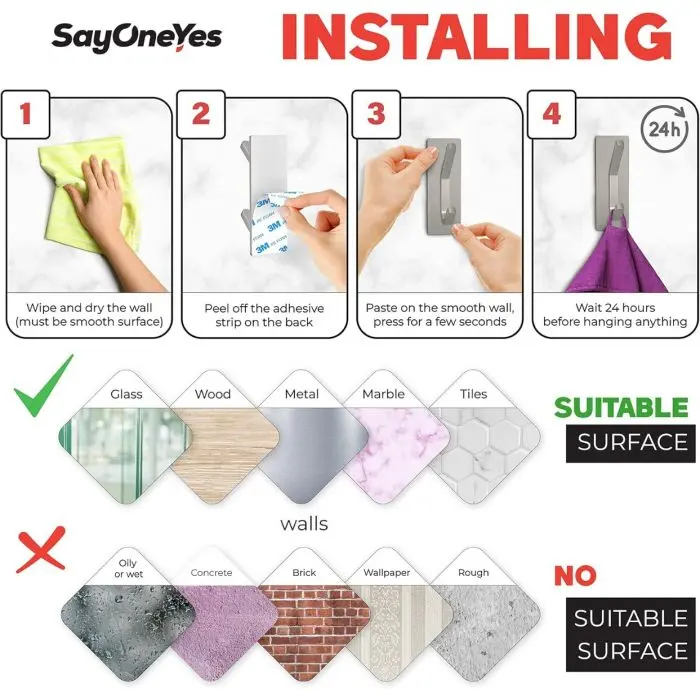 Fácil de usar e instalación rápida, solo lleva unos segundos instalarlo, sin taladrar, tornillos, clavos ni pegamento.