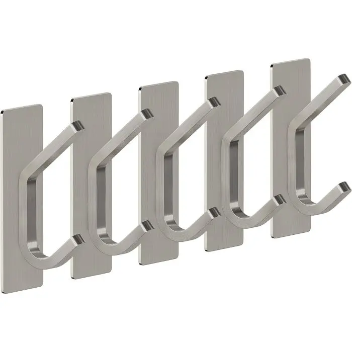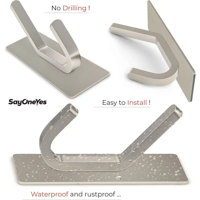 Soporta hasta 6 Kgs con tiras superadhesivas de doble cara, este gancho de pared se sostiene bien y no se cae.